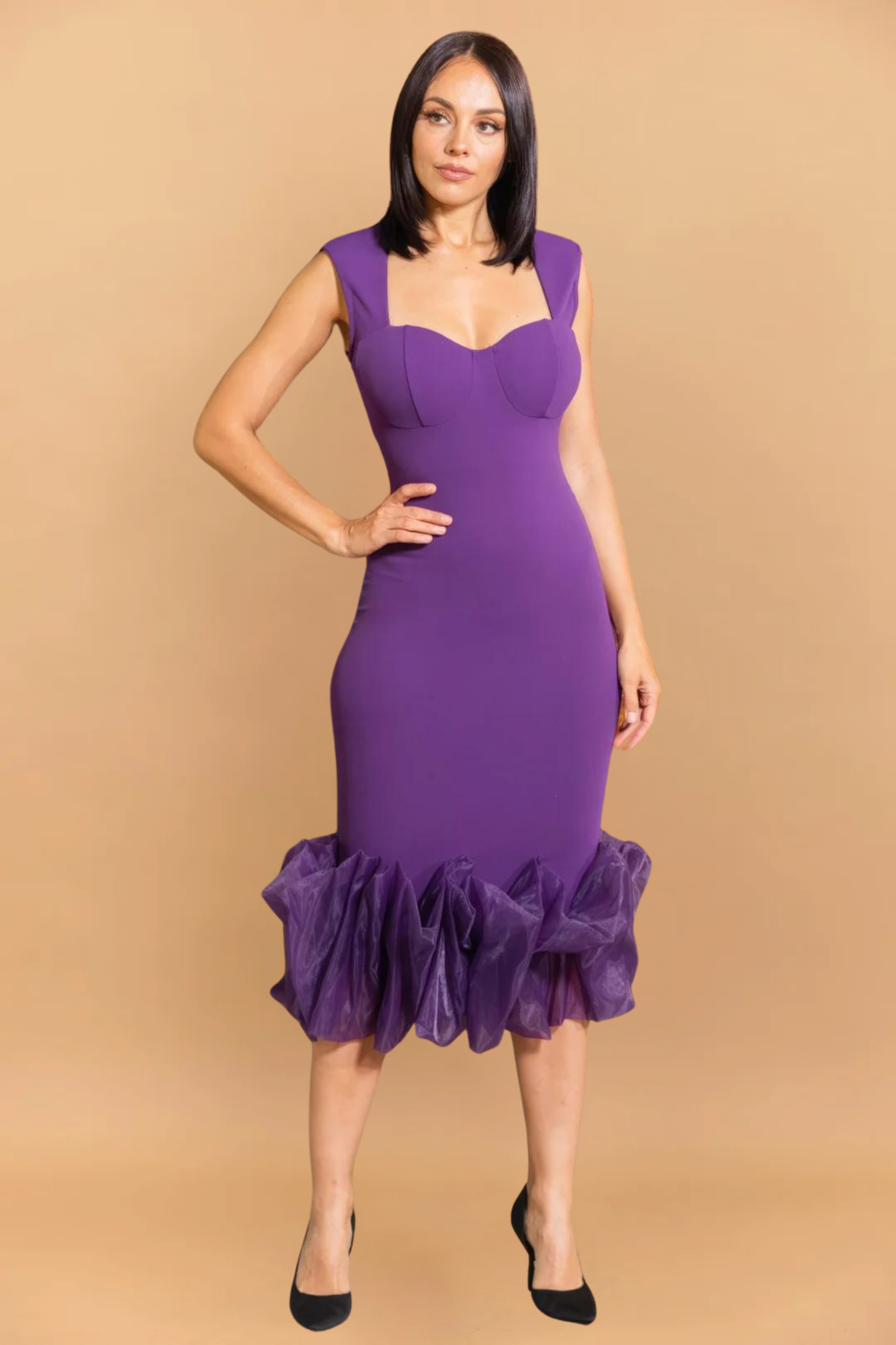 Make a statement with our Organza Ruffle Detailed Fashion Dress in Ultra Violet. Add it to your cart now and experience the perfect blend of grace and modern elegance!